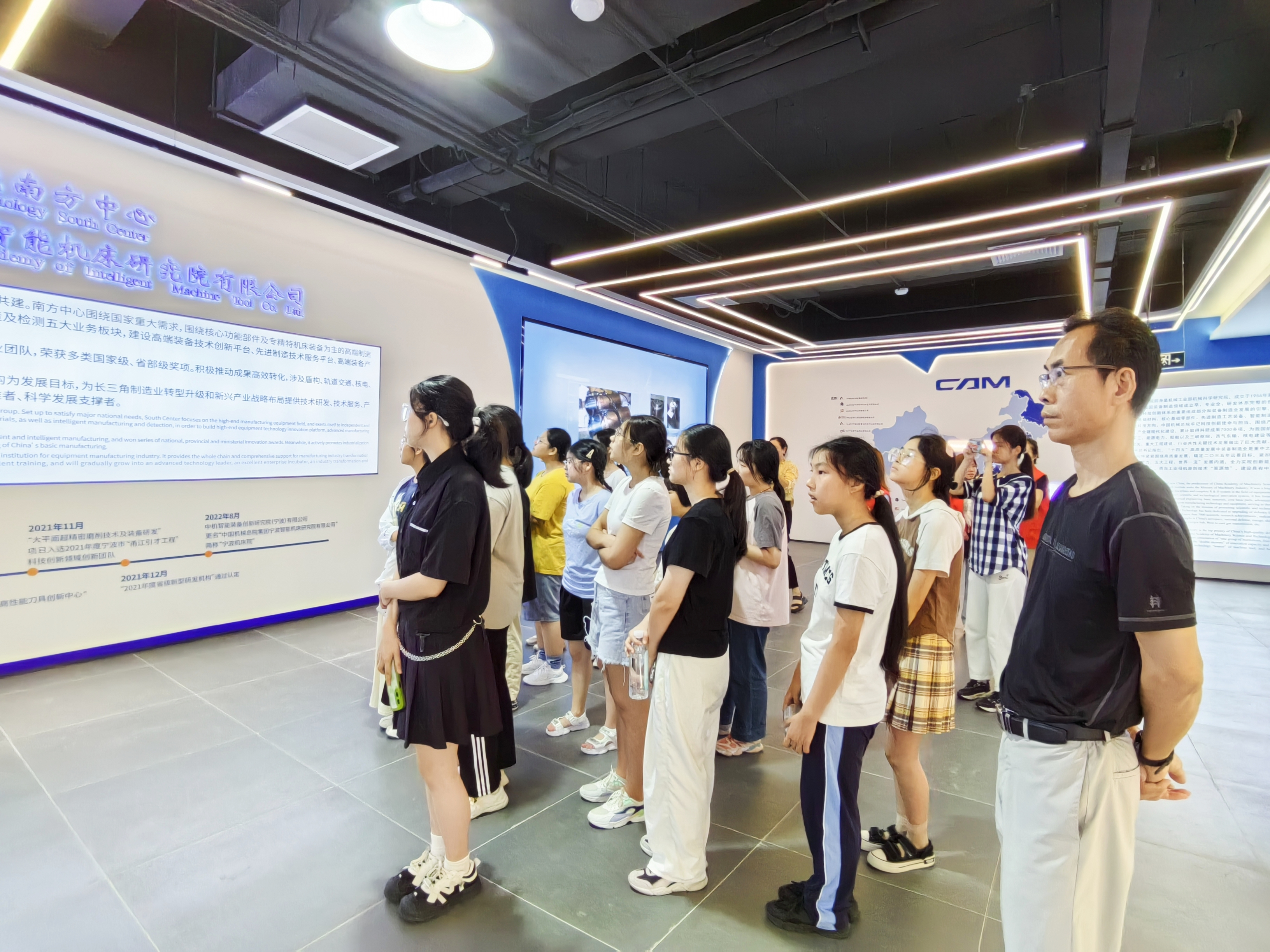 這次活動,通過“動靜結(jié)合、交流互動”等方式展開,在參觀公司展廳,讓學(xué)習(xí)了解寧波機床院的發(fā)展、建設(shè)歷程、成果成就,了解作為國資央企服務(wù)國家發(fā)展大局的使命擔(dān)當(dāng);在參觀實驗室,多角度、全方位了解科研創(chuàng)新、新先技術(shù)發(fā)展等。在交流環(huán)節(jié),2位外國專家和1位博士分享了如何成長成才的經(jīng)驗,鼓勵學(xué)生提升自信、開闊眼界,努力學(xué)習(xí);分享后,學(xué)生與專家、博士進行了互動交流。